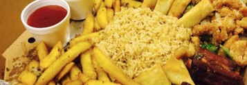 Choose sauce from: BBQ, sweet & sour or curry sauce - Salt & Pepper Box Meal (12")£18.00(Chicken Balls x6, Mini Veg Spring Rolls x6, Spare Ribs x6, Chicken Nuggets, Chips)